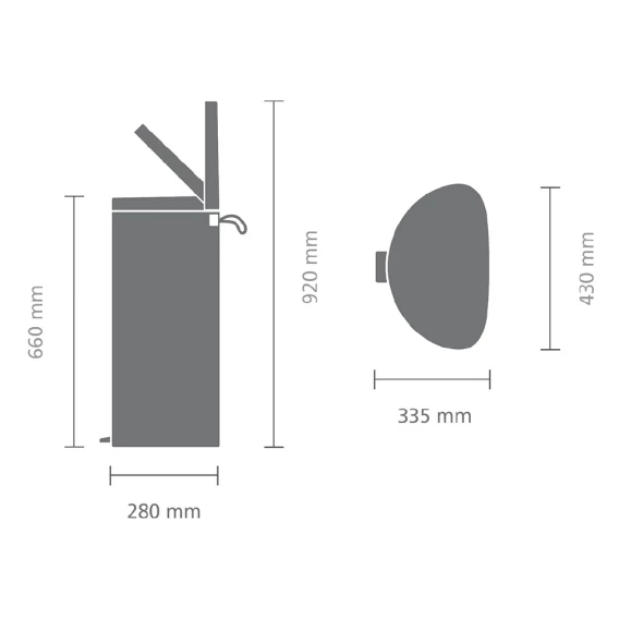 Экономия места – бак удобно устанавливается вплотную к стене или кухонному шкафу.Бесшумное закрывание и мягкий ход педали.При открывании крышка не касается стены.При открывании вручную крышка фиксируется в открытом положении.Удобная очистка – съемное внутреннее ведро из пластика со складными захватами.Удобная смена мешков для мусора – фиксации внутреннего ведра в «поднятом» положении.Бак удобно перемещать – гибкая ручка для переноски.Предохранение пола от повреждений – пластиковое защитное основание.Всегда опрятный вид – в комплекте идеально подходящие по размеру мешки для мусора PerfectFit (размер L).
