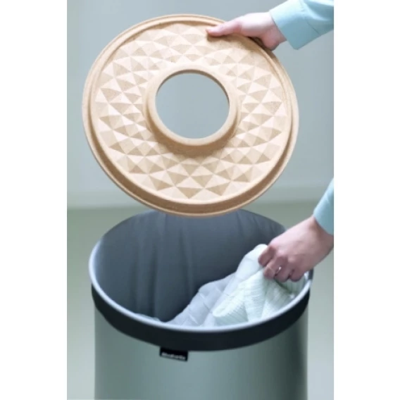 Крышка из натуральной пробки придает особый теплый колорит интерьеру, а благодаря наличию в ней специального загрузочного отверстия "Quick-Drop" белье можно закладывать, не открывая бак. Снимите крышку в день стирки и легко достаньте из бака идеально подходящий по размеру хлопковый мешок с бельем!