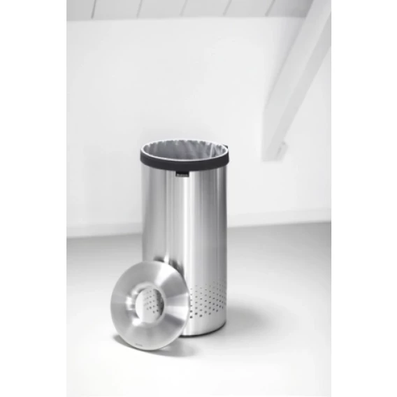 • Удобно закладывать и доставать белье – благодаря оригинальной конструкции крышку можно закрепить на верхнем ободе бака.• Небольшие вещи можно закладывать, не открывая крышку – загрузочное отверстие "Quick-Drop".• Белье легко переносится к стиральной машине в мешке.• Удобен в использовании – идеально подходящий по размеру съемный мешок для белья с креплением на липучке.• 10-летняя гарантия Brabantia.