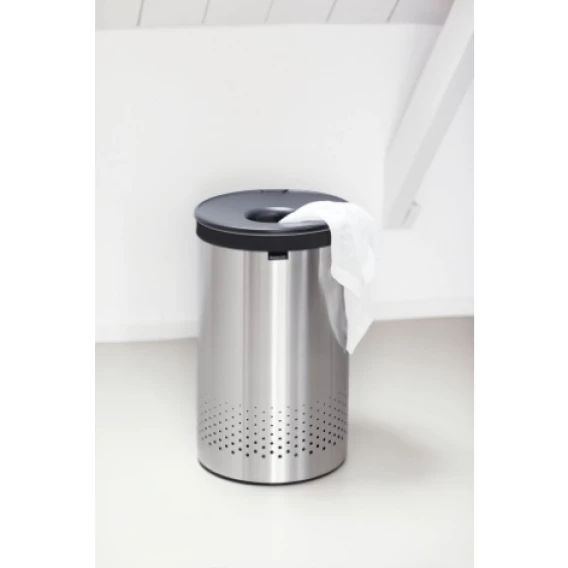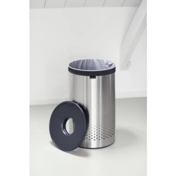 • Удобно закладывать и доставать белье – благодаря оригинальной конструкции крышку можно закрепить на верхнем ободе бака.• Небольшие вещи можно закладывать, не открывая крышку – загрузочное отверстие "Quick-Drop".• Белье легко переносится к стиральной машине в мешке.• Удобен в использовании – идеально подходящий по размеру съемный мешок для белья с креплением на липучке.• 10-летняя гарантия Brabantia.