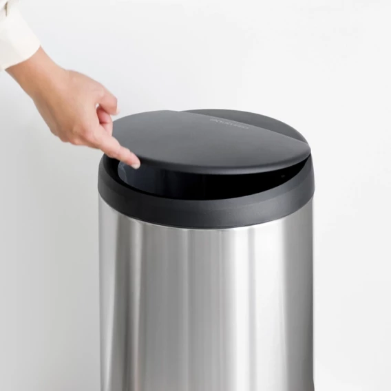 Прост в обращении – открывается одним кончиком пальца.При открывании крышка не задевает стену.Удобная очистка – съемное пластиковое ведро с ручками.Покрытие с защитой от отпечатков пальцев (FPP).Всегда опрятный вид – идеально подходящие по размеру мешки PerfectFit (размер G).Предохранение пола от повреждений – пластиковый защитный обод.
