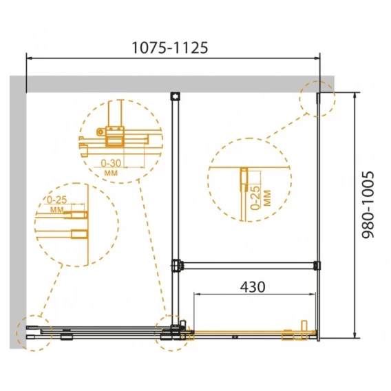 Габариты с диапазоном регулировок, мм: (1075-1125)x(980-1005)x1950