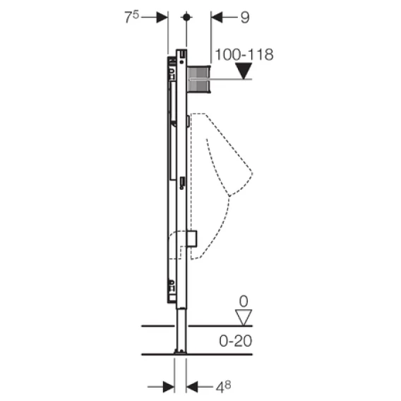 Описание• Высота элемента регулируется от 112 см до 130 см, взависимости от санфаянса писсуара• Рама с отверстиями ø 9 мм для крепления в деревянномкаркасе• Ножки оцинкованные, с бесступенчатой регулировкой 0 - 20 см• Самонесущая конструкция• Рама порошковой окраски, синий ультрамарин• Опорная площадка поворотная, для монтажа в U-образныйпрофиль UW 50 и UW 75• Подвод воды 1/2", подходит для MeplaFix• Подвод воды монтируется без использования инструментов• Предварительно смонтирован запорный вентиль с дросселем• Предварительно смонтирована трубка подвода для промывкитрубопровода• Коробка монтажная для окна обслуживания, укорачиваемаязаподлицо• Гибкий армированный рукав между коробкой скрытого монтажаи патрубком подвода воды• Крепление патрубка смыва ø 32 мм, регулируемое по высоте• Крепления для санфаянса M8 с регулировкой по высоте иширине• Регулируемое по высоте и шумопоглощающее крепление длясоединительного колена• Самостопорящиеся опоры для выравнивания элемента безприменения инструментов• Возможно дополнительное крепление для керамическогописсуара с принадлежностями• Возможно переоборудование для писсуаров с распыляющейголовкой с принадлежностями