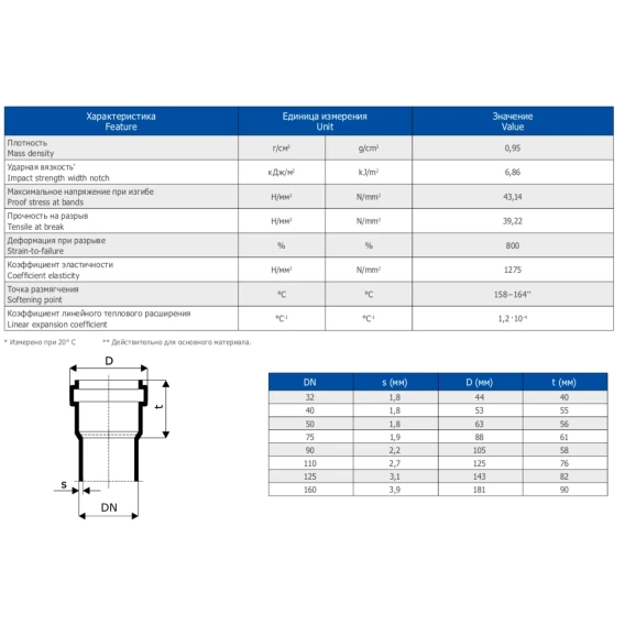 Труба канализационная с раструбом 110 х 1500 мм Ostendorf HTEM 115050