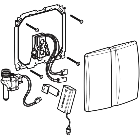 Объем поставкиЗащитная крышка с окошком ИК-датчикаМонтажная pамаИК-датчикЭлектромагнитный клапан2 щелочно-марганцевых батарейки типа АА, 1,5 ВКрепеж