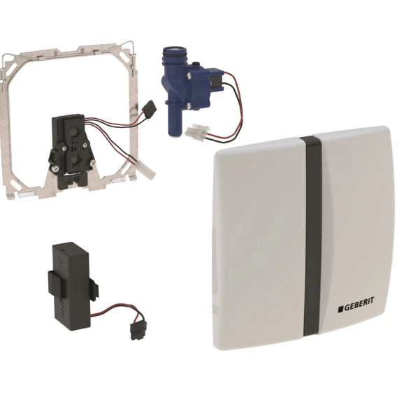 ХарактеристикиЗащитная крышка с предохранителемНадежное ИК-распознавание на расстоянииИК-датчик с автоматическими регулировкамиИК-датчик присутствия с распознаванием пользователяРегулируемое время смываВручную регулируемое время смываРегулируемая периодическая подача водыДинамическая регулировка времени смываРегулируемый предварительный смывВозможна модернизация для эксплуатации с писсуаром с крышкойОднократный смыв при активации подачи электропитанияС питанием от батареиПредупреждение о низком заряде батареиФункция закрывания вентиля при разряженной батарееФункции регулируются и запрашиваются при помощи пульта для настройки GeberitВозможно отключение задействования смыва через Geberit Clean-Handy