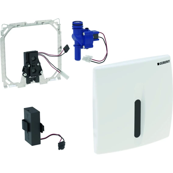 ХарактеристикиЗащитная крышка с предохранителемНадежное ИК-распознавание на расстоянииИК-датчик с автоматическими регулировкамиИК-датчик присутствия с распознаванием пользователяРегулируемое время смываВручную регулируемое время смываРегулируемая периодическая подача водыДинамическая регулировка времени смываРегулируемый предварительный смывВозможна модернизация для эксплуатации с писсуаром с крышкойОднократный смыв при активации подачи электропитанияС питанием от батареиПредупреждение о низком заряде батареиФункция закрывания вентиля при разряженной батарееФункции регулируются и запрашиваются при помощи пульта для настройки GeberitВозможно отключение задействования смыва через Geberit Clean-Handy