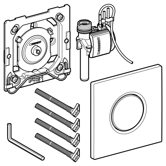 Объем поставкиСмывная клавиша, тип 01Система пневматического задействования смыва, предустановлена на монтажной рамкеПневматический клапанКрепеж