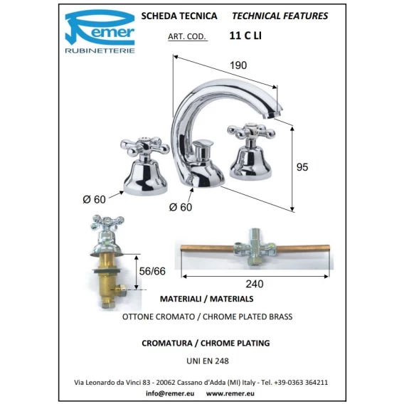 Смеситель для раковины с донным клапаном Remer Liberty 11CLICE