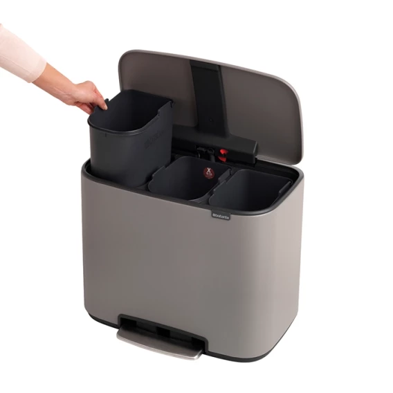 Бесшумный – плавное закрывание крышки и необыкновенно мягкий ход педали.Не пропускает запах – плотно прилегающая крышка.Экономия места – удобно устанавливается вплотную к стене или в углу.Крышка удобно фиксируется в открытом положении специальным переключателем.3 съемных внутренних ведра – идеальное решение для раздельного сбора домашних отходов.Удобная очистка – съемное внутреннее ведро из пластика.Отличная устойчивость и защита пола от повреждения – нескользящее основание.Бесплатная упаковка мешков для мусора Brabantia PerfectFit (размеры X) – удобная замена и всегда опрятный вид.Бронзовый сертификат "Cradle to Cradle".Бак подлежит вторичной переработке на 98 %, упаковка и внутренние ведра на 100%.