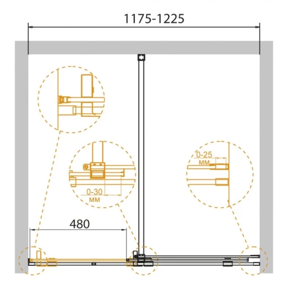 Габариты с диапазоном регулировок, мм: (1175-1225)x1950