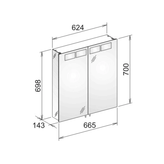 • 2 распашные дверцы с двухсторонним зеркалом с плавным закрыванием