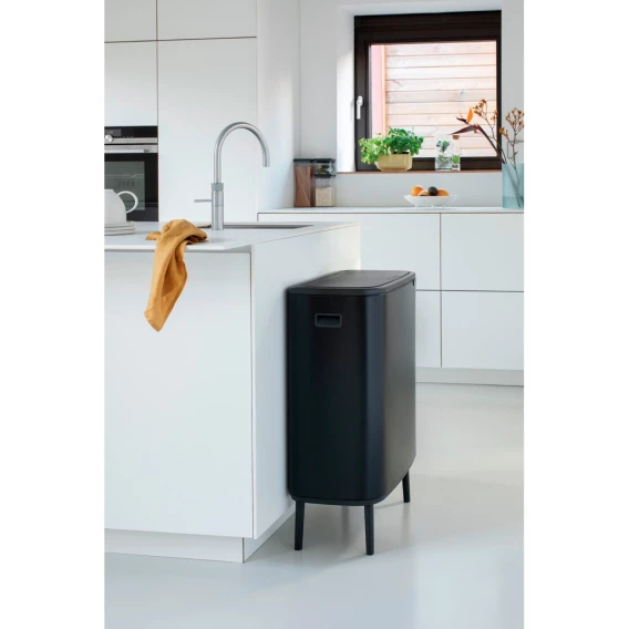 Высокий и одновременно вместительный бак для ещё большего количества домашних отходов.Крышка бесшумно открывается легким касанием – система 'Soft-Touch'.Экономия места – удобно устанавливается вплотную к стене или в углу.2 съемных внутренних ведра – идеальное решение для раздельного сбора домашних отходов.Идеальное решение для сбора объемного мусора – крышка фиксируется в открытом положении.Удобное мытье полов – бак на ножках.Простой уход – съемные внутренние ведра из пластика.Отличная устойчивость и защита пола от повреждения – регулируемые по высоте ножки с нескользящим основанием.Бесплатная упаковка мешков для мусора Brabantia PerfectFit (размер O) – удобная замена и всегда опрятный вид.Легко собирается – защелкивающиеся ножки, инструкция в комплекте.Бронзовый сертификат "Cradle to Cradle".