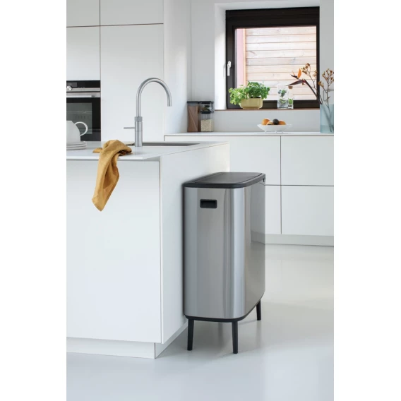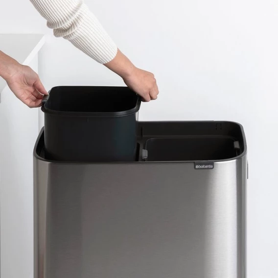 Высокий и одновременно вместительный бак для ещё большего количества домашних отходов. Крышка бесшумно открывается легким касанием – система 'Soft-Touch'. Экономия места – удобно устанавливается вплотную к стене или в углу. 2 съемных внутренних ведра – идеальное решение для раздельного сбора домашних отходов. Идеальное решение для сбора объемного мусора – крышка фиксируется в открытом положении. Удобное мытье полов – бак на ножках. Простой уход – съемные внутренние ведра из пластика. Отличная устойчивость и защита пола от повреждения – регулируемые по высоте ножки с нескользящим основанием. Бесплатная упаковка мешков для мусора Brabantia PerfectFit (размер O) – удобная замена и всегда опрятный вид. Легко собирается – защелкивающиеся ножки, инструкция в комплекте. Бронзовый сертификат "Cradle to Cradle".