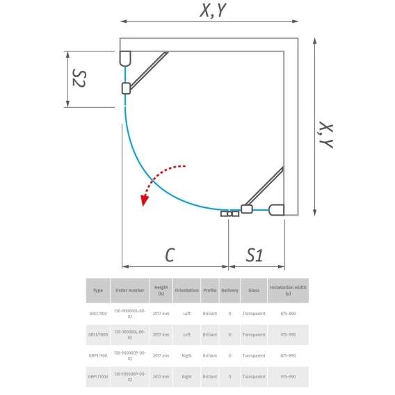 Душевой уголок Roltechnik Elegant GRL1/900 130-900000L-00-02 прозрачное