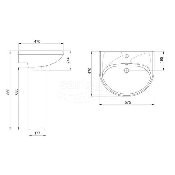 Раковина 57,5x47 см Santeri West 1.3111.8.S06.11B.0