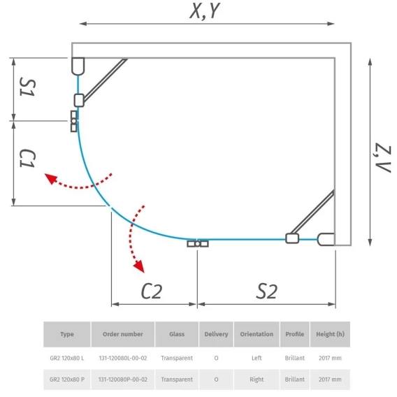 Душевой уголок Roltechnik Elegant GR2 120x80 P 131-120080P-00-02 прозрачное