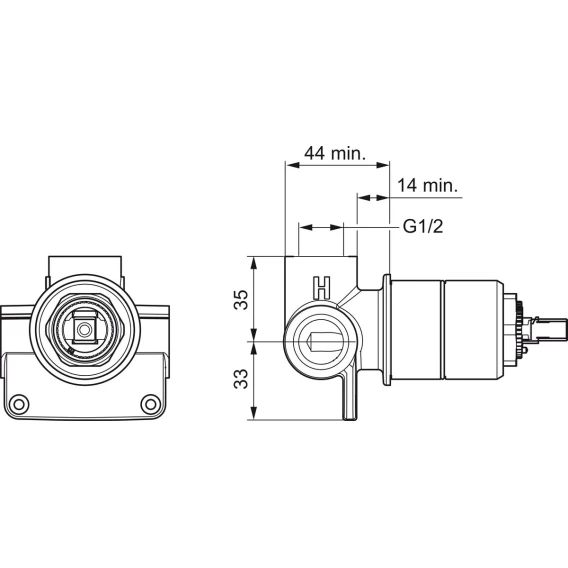 • Встраиваемый корпус смесителя для душа.
