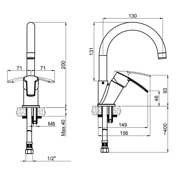 Длина излива 13 см