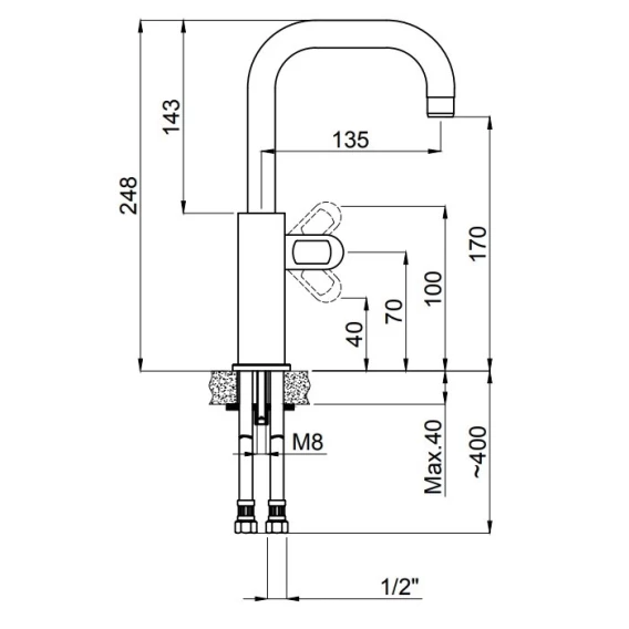 Длина излива 13.5 см