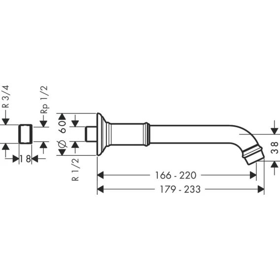 Излив для ванны 166 мм Axor Montreux 16541820