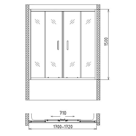 Шторка для ванны 170 см Gemy New Rockcoco S12192B прозрачное