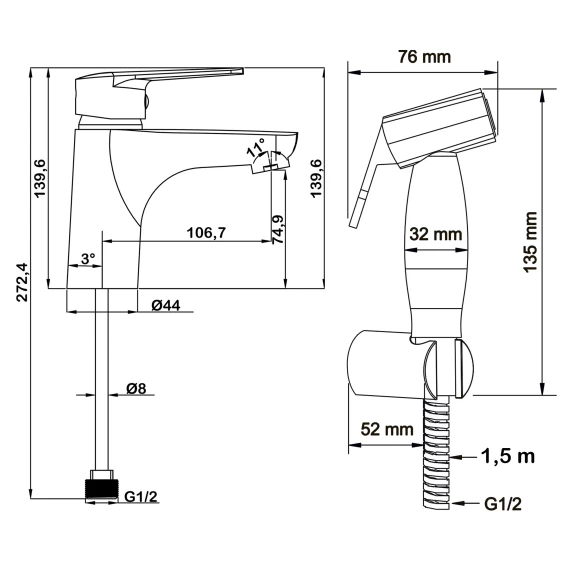 Смеситель для раковины с гигиеническим душем Swedbe Mars 1760B