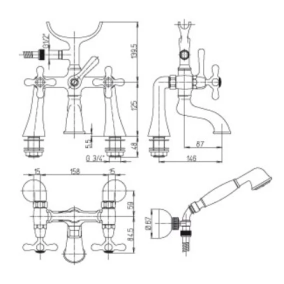Смеситель на борт ванны ванны Paini Liberty 17CR108