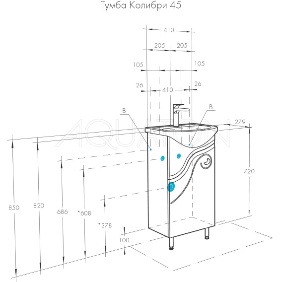 Механизм доводчика, Полочка, Ручка, Ножки, Тумба под раковину, Раковина