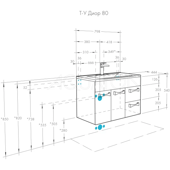 Механизм доводчика, Ящик, Полочка, Ручки, Тумба под раковину, Раковина, Силиконовый герметик