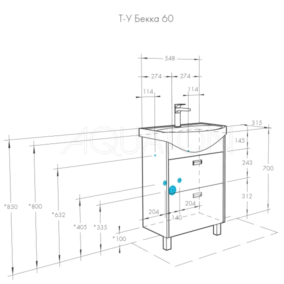 Комплект мебели белый глянец/дуб сомерсет 61 см Акватон Бекка 1A196601BAC20 + 1WH110246 + 1A214602BAC20