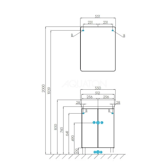 Комплект мебели белый глянец/серый кашемир 50 см Акватон Скай 1A238001SY010 + 1WH302184 + 1A238402SY010