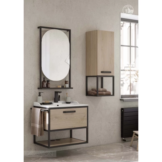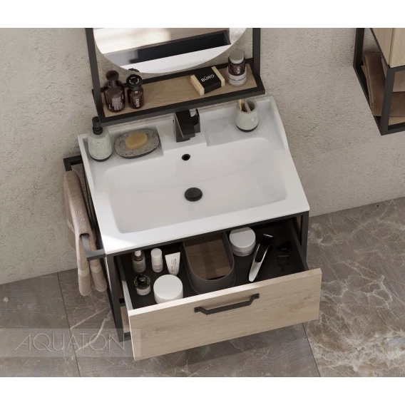 Тумба с раковиной дуб эндгрейн/черный 65,3 см Акватон Лофт Фабрик 1A2423K1LTDU0