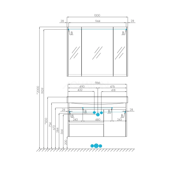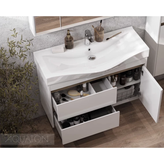 Тумба с раковиной белый глянец/дуб эндгрейн 100 см Акватон Нортон 1A2490K0NT010