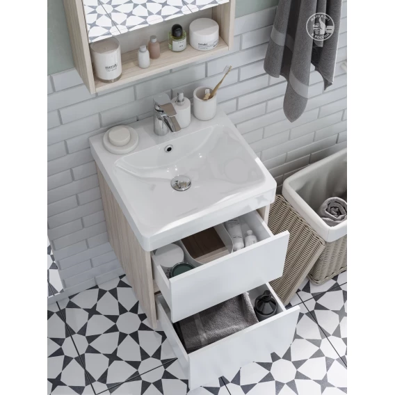 Тумба с раковиной белый глянец/дуб верона 45 см Акватон Сканди 1A2516K0SDB20