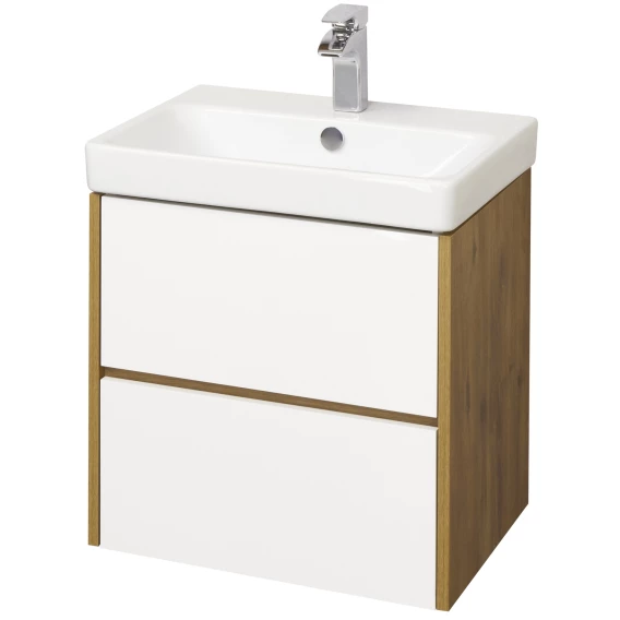 Тумба с раковиной белый глянец/дуб рустикальный 55 см Акватон Сканди 1A2517K0SDZ90
