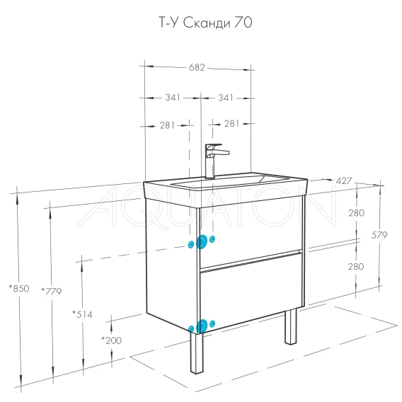 Тумба белый глянец/дуб рустикальный 68,2 см Акватон Сканди 1A251801SDZ90