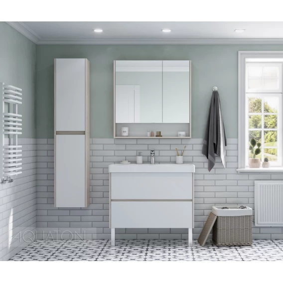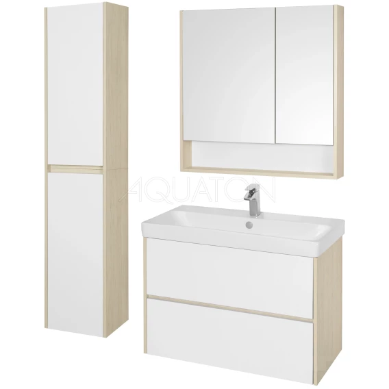 Комплект мебели белый глянец/дуб верона 90 см Акватон Сканди 1A251901SDB20 + 1WH501629 + 1A252302SDB20