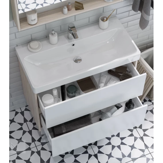 Тумба с раковиной белый глянец/дуб верона 90 см Акватон Сканди 1A2519K0SDB20