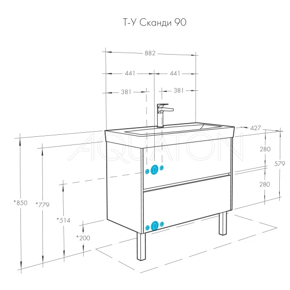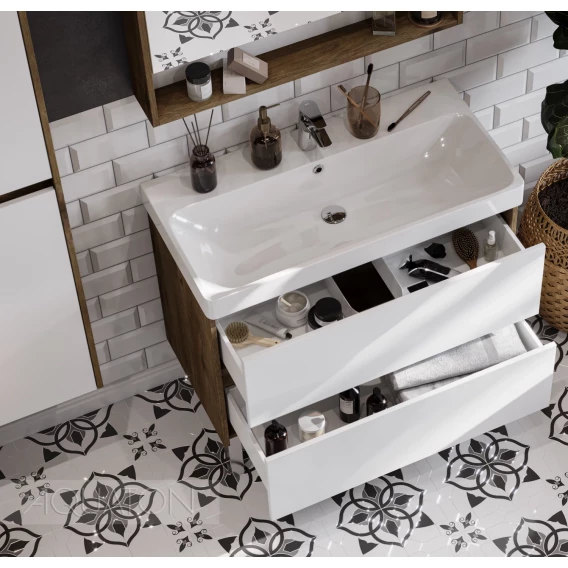 Комплект мебели белый глянец/дуб рустикальный 90 см Акватон Сканди 1A251901SDZ90 + 1WH501629 + 1A252302SDZ90
