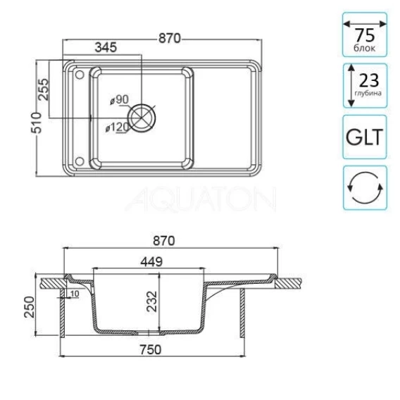 Кухонная мойка Акватон Беллис графит 1A724832BS210