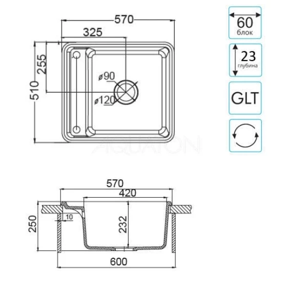 Кухонная мойка Акватон Беллис серый шелк 1A724832BS250