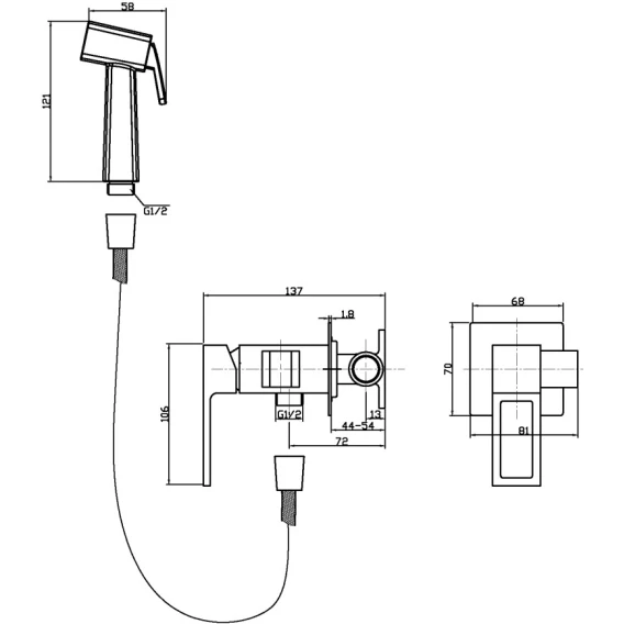 Душевой шланг, Душевая лейка, Подключение для душевого шланга с держателем, Скрытая монтажная часть, Смеситель