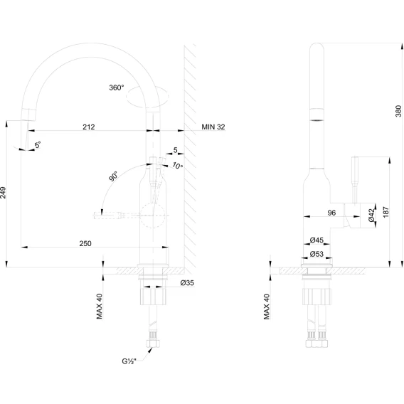 Смеситель для кухни Plstart PL4515-7 черный матовый