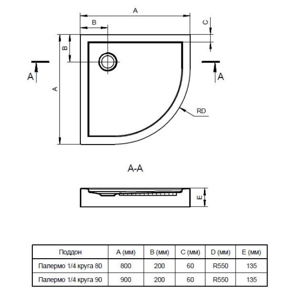 Акриловый поддон 90x90 см Santek Палермо 1.WH30.2.478