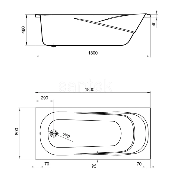 Акриловая ванна 180x80 см Santek Касабланка XL 1.WH30.2.482