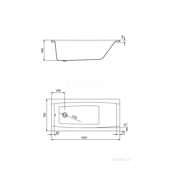 Акриловая ванна 150x70 см Santek Санторини 1.WH30.2.497