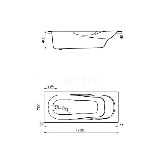 Акриловая ванна 170x70 см Santek Касабланка М 1.WH50.1.531