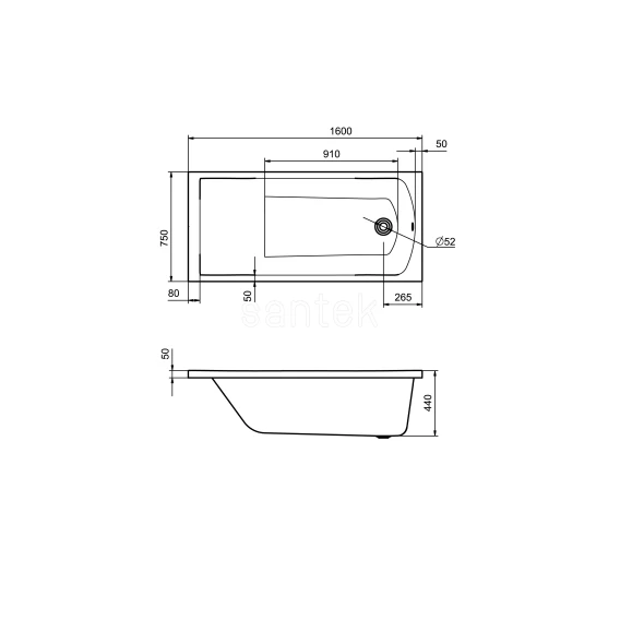 Акриловая ванна 160x75 см Santek Фиджи 1.WH50.1.597
