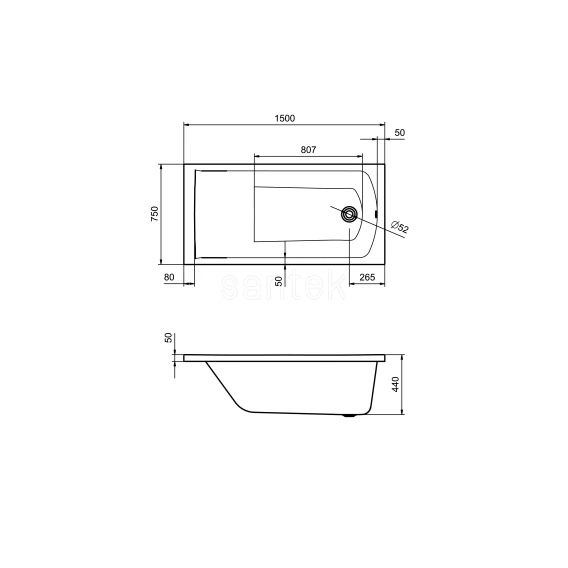 Акриловая ванна 150x75 см Santek Фиджи 1.WH50.1.598